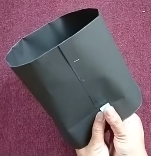 10. Selanjutnya, lipat kebelakang dan satukan ujung nya sehingga berbentuk bulatan seperti dibawah ini. Setelah sudah rapi, kemudian hekter di 2 titik saha. pertama pada titik bagian yang tertutup (tengah lipatan) kemudian bagian atas yang dilipat secara simetris tepat di bagian yang terlipat tadi.