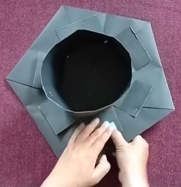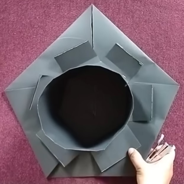 11. Kemudian gunting 6 bagian pada yang dilipat seperti gambar dibawah ini. Lekuk kan keluar pada bagian yang sudah didunting dan akan membentuk pola seperti pada gambar kedua dibawah ini.