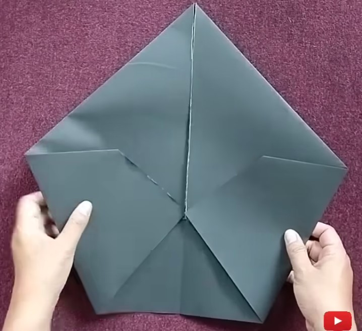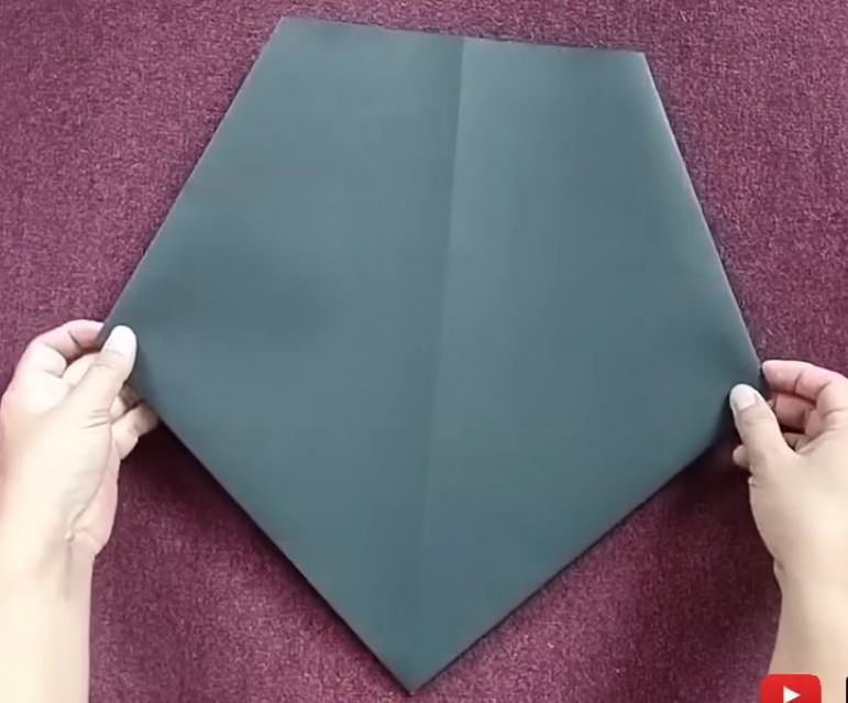 5. Setelah lipatan selesai sesuai dengan petunjuk 1-4 maka hasilnya akan seperti gambar dibawah ini. Disini sudah mulai terlihat sisi 5 dari pola topi toga tersebut.